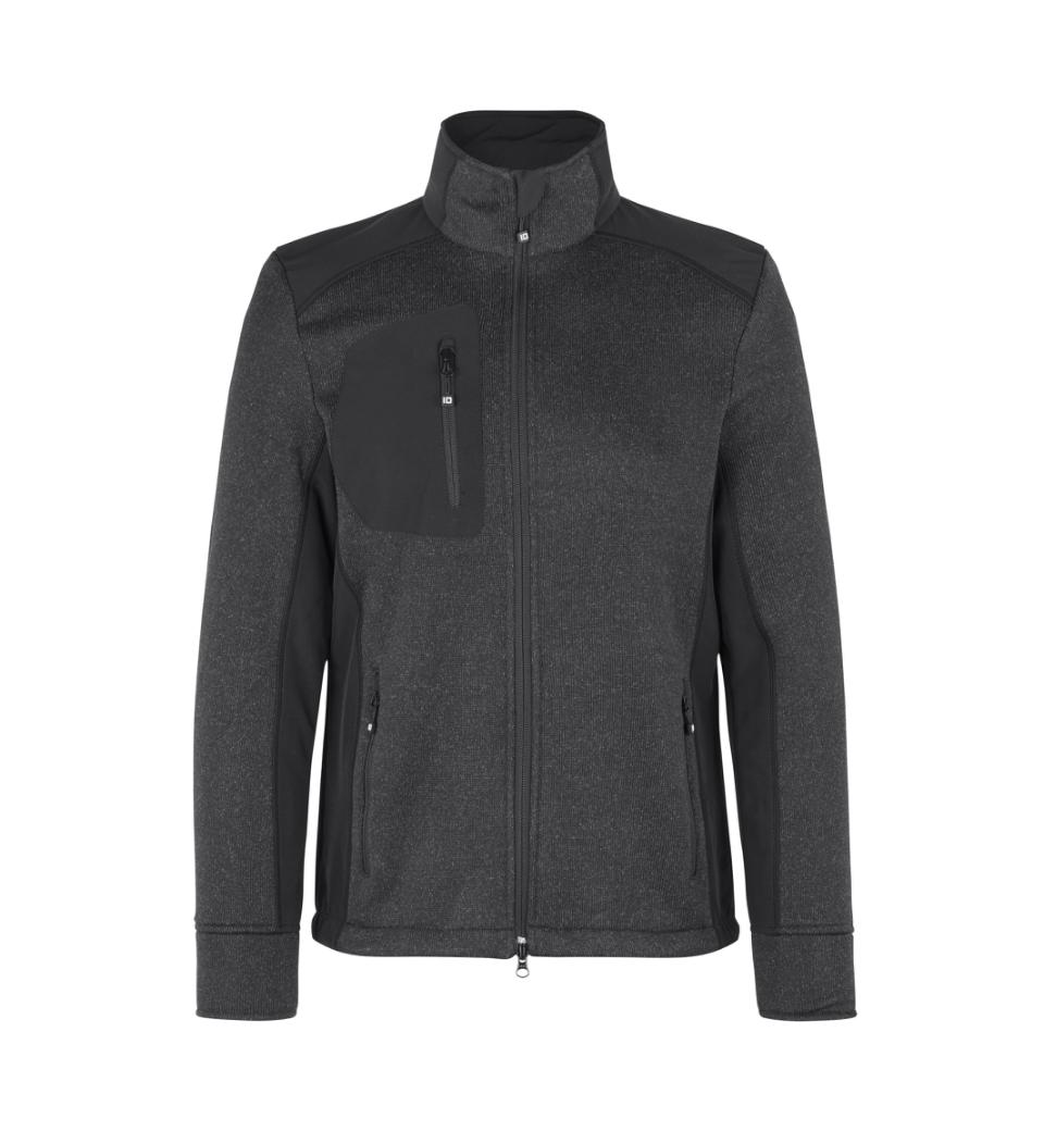 Neulottu fleece-neuletakki jossa kontrastisia laikkuja. Täyspitkä vetoketju. Kaksi sivutaskua ja rintatasku, jossa kaikissa laadukas vetoketju .