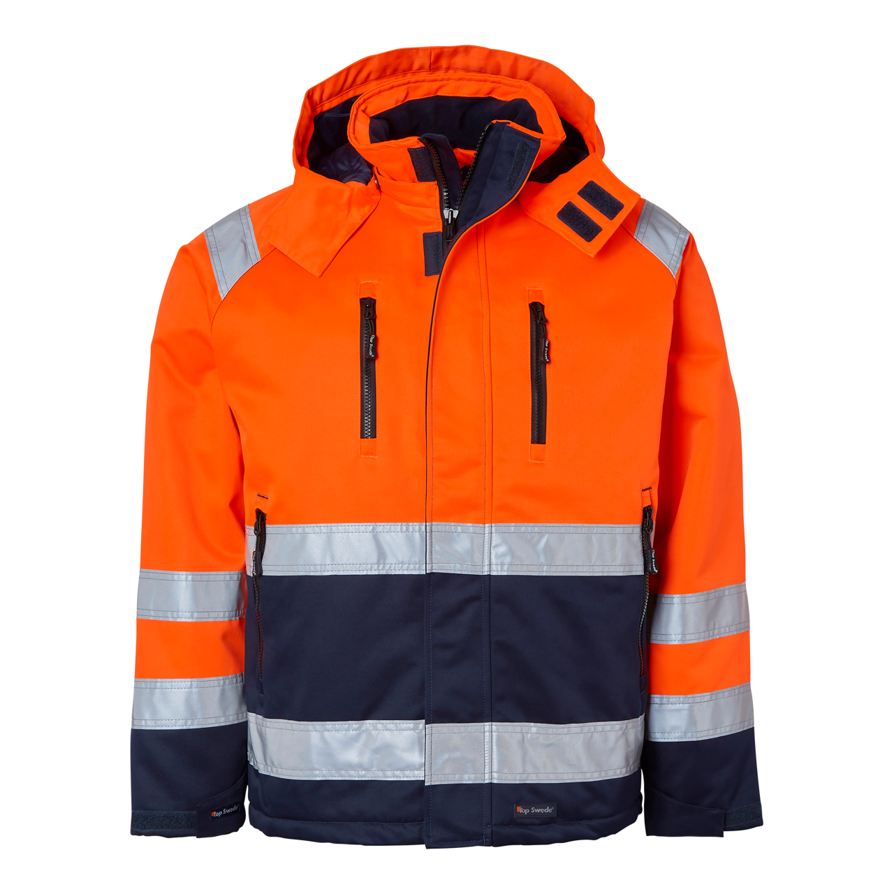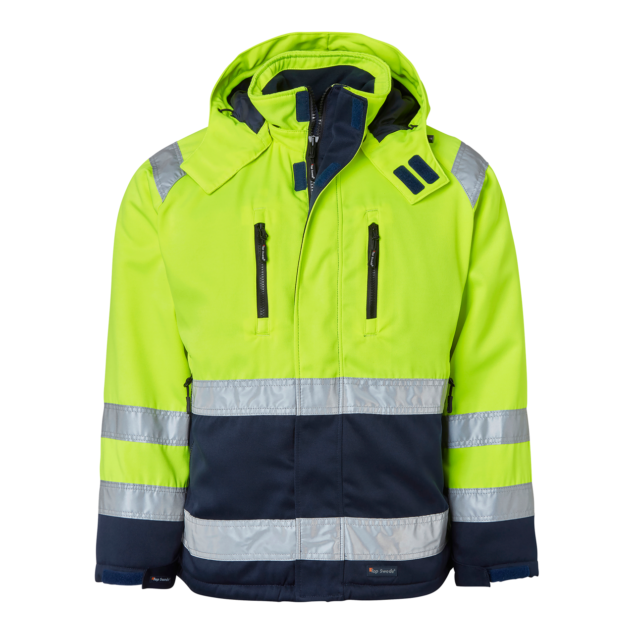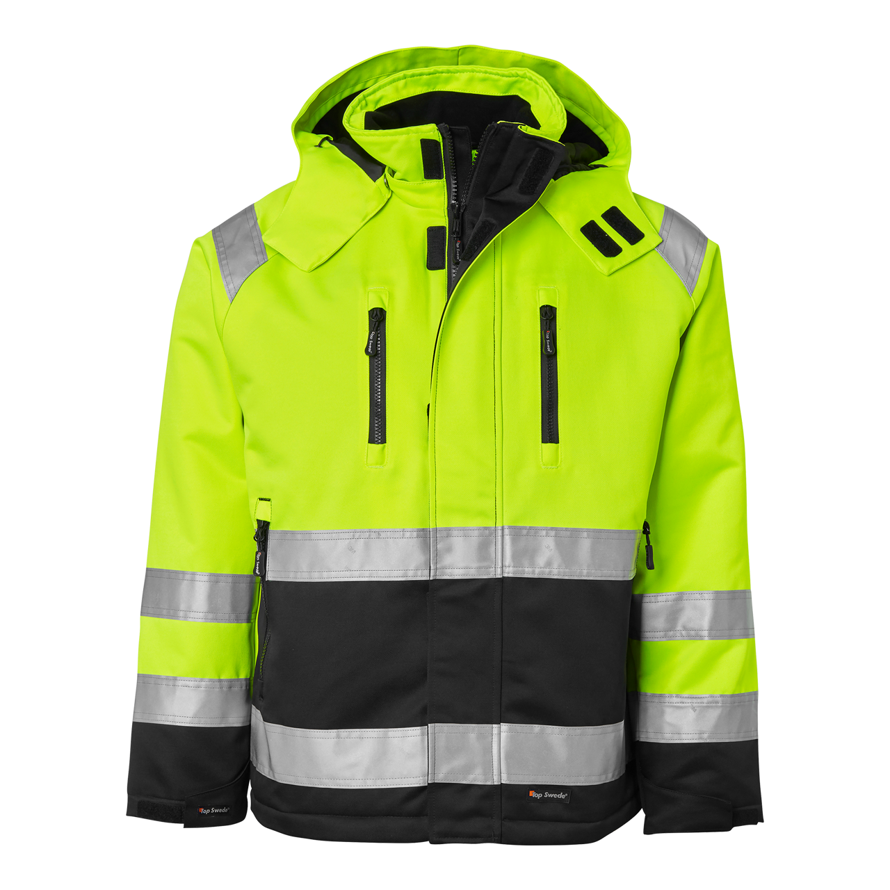 Top Swede -talvitakki, joka on suunniteltu tarjoamaan parasta mukavuutta ja toimivuutta. Pehmustettu tikatulla vuorilla ja kauluksessa fleeceä, vetoketju ulottuu kaulukseen asti, ja hupun voi irrottaa. Useita taskuja ja säädettävät hihansuut. Täydellinen rakennus- ja teollisuustyöhön.